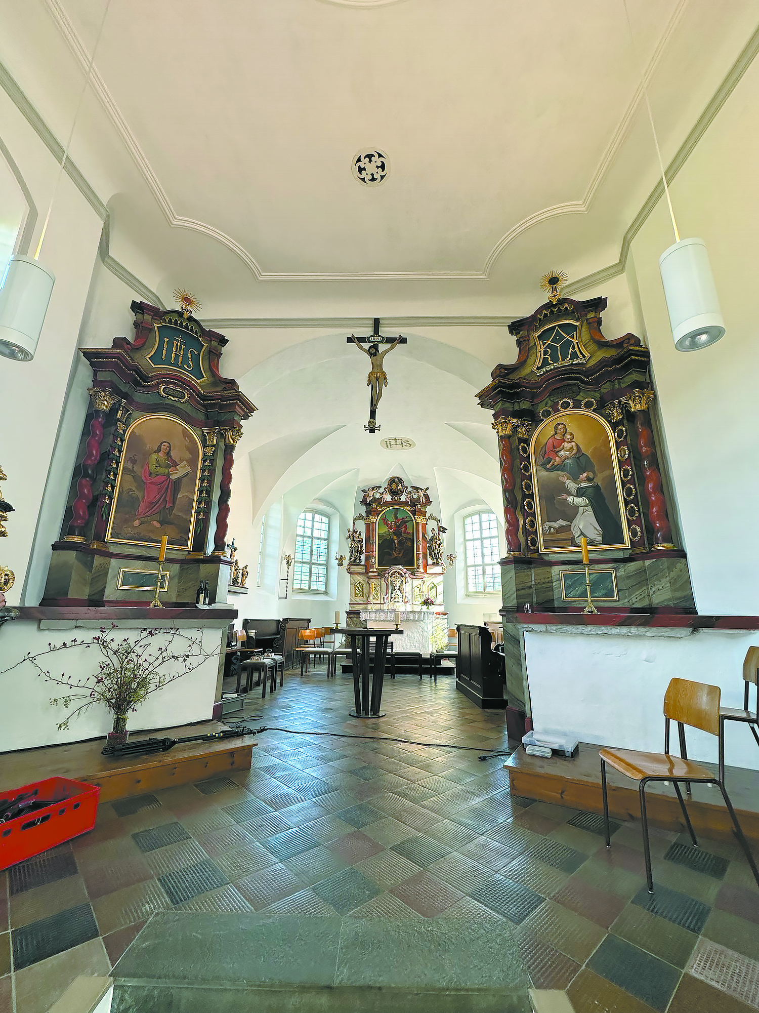 Am westlichen Ausläufer des Blasenbergs gelegen, steht die Alte Pfarrkirche St. Michael in Tisis an einem prominenten Platz. Das „Tisner Kirchile“ gehört zu den bedeutenden baukulturellen Denkmälern in Vorarlberg. Konnte die Pfarre Tisis als Eigentümerin der Kirche im Jahr 2019 die historischen Außenputze sowie die jahrhundertealten Wandmalereien restaurieren, so war für heuer die Sanierung und Restaurierung des Innenraums vorgesehen. Vor Beginn der Arbeiten wurde im Vorjahr eine Bauforschung durchgeführt, welche die verschiedenen Bauetappen mit modernsten Methoden dokumentiert hat. Die ältesten Bauteile – die Südwand und der untere Teil des Turms – wurden um das Jahr 1280 errichtet, so das Ergebnis.