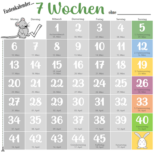 Fastenzeit mein Vorsatz Drucke den Fastenkalender aus und kreuze jeden Tag an, an dem Du Deinen Vorsatz erfüllt hast. Mehr lesen