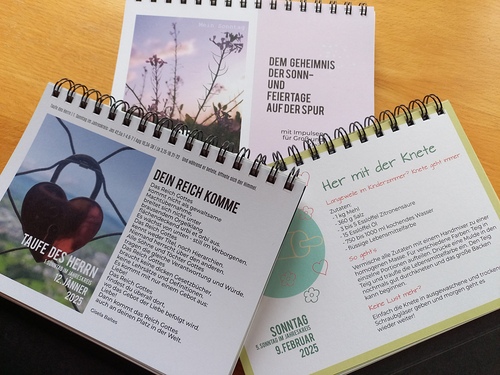 Gedankenimpulse für Sonn- und Feiertage Sonntagskalender Um den kulturellen und gesellschaftlichen Wert des Sonntags ins Blickfeld rücken, ist auch für das kommende Jahr ein Sonntagskalender in Arbeit. Mehr lesen